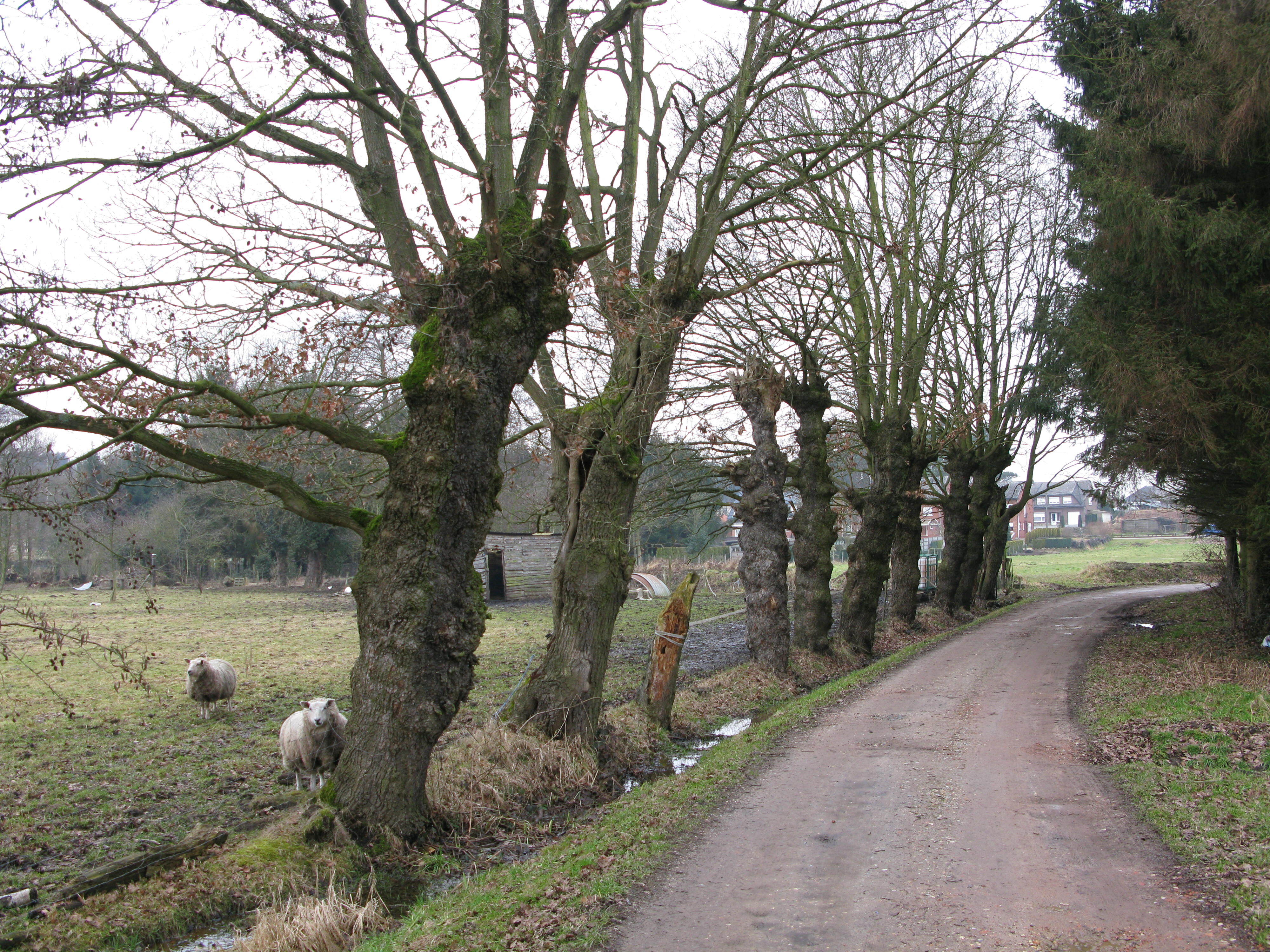 De afbeelding 'Rij van geknotte zomereiken' gemaakt door Van Ormelingen, Jan wordt ter beschikking gesteld door Agentschap Onroerend Erfgoed (AOE) onder de volgende voorwaarden: Modellicentie voor gratis hergebruik, Naamsvermelding 4.0 Internationaal.