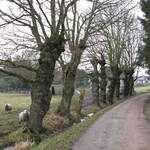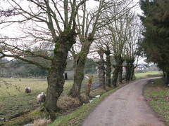 Rij van geknotte zomereiken