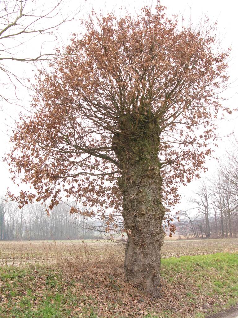 De afbeelding 'Knotbomenrij van zomereik' wordt ter beschikking gesteld door Agentschap Onroerend Erfgoed (AOE) onder de volgende voorwaarden: Modellicentie voor gratis hergebruik, Naamsvermelding 4.0 Internationaal.