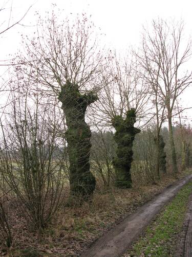 De afbeelding 'Knotbomenrij met 32 knoteiken' wordt ter beschikking gesteld door Agentschap Onroerend Erfgoed (AOE) onder de volgende voorwaarden: Modellicentie voor gratis hergebruik, Naamsvermelding 4.0 Internationaal.