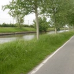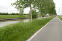 Polder van Adinkerke ter hoogte van het Kanaal Nieuwpoort-Duinkerke met jonge opgaande bomenrij (2007)