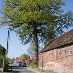 Opgaande zomereik als hoekboom bij kerkwegel