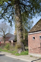 Opgaande zomereik als hoekboom bij kerkwegel