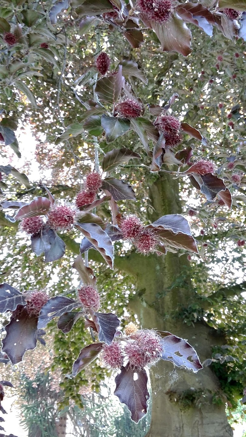 Opgaande bruine beuk als vredesboom bij herdenkingsmonument