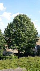 Twee opgaande zilverlindes als vredesbomen