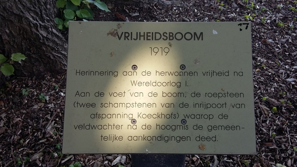 De afbeelding 'Opgaande linde als vredesboom met roepstenen' gemaakt door Schepens, Annelies wordt ter beschikking gesteld door Agentschap Onroerend Erfgoed (AOE) onder de volgende voorwaarden: Modellicentie voor gratis hergebruik, Naamsvermelding 4.0 Internationaal.