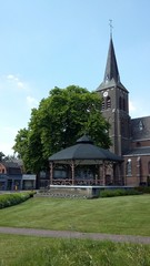 De afbeelding 'Opgaande linde als vredesboom met roepstenen' gemaakt door Schepens, Annelies wordt ter beschikking gesteld door Agentschap Onroerend Erfgoed (AOE) onder de volgende voorwaarden: Modellicentie voor gratis hergebruik, Naamsvermelding 4.0 Internationaal.