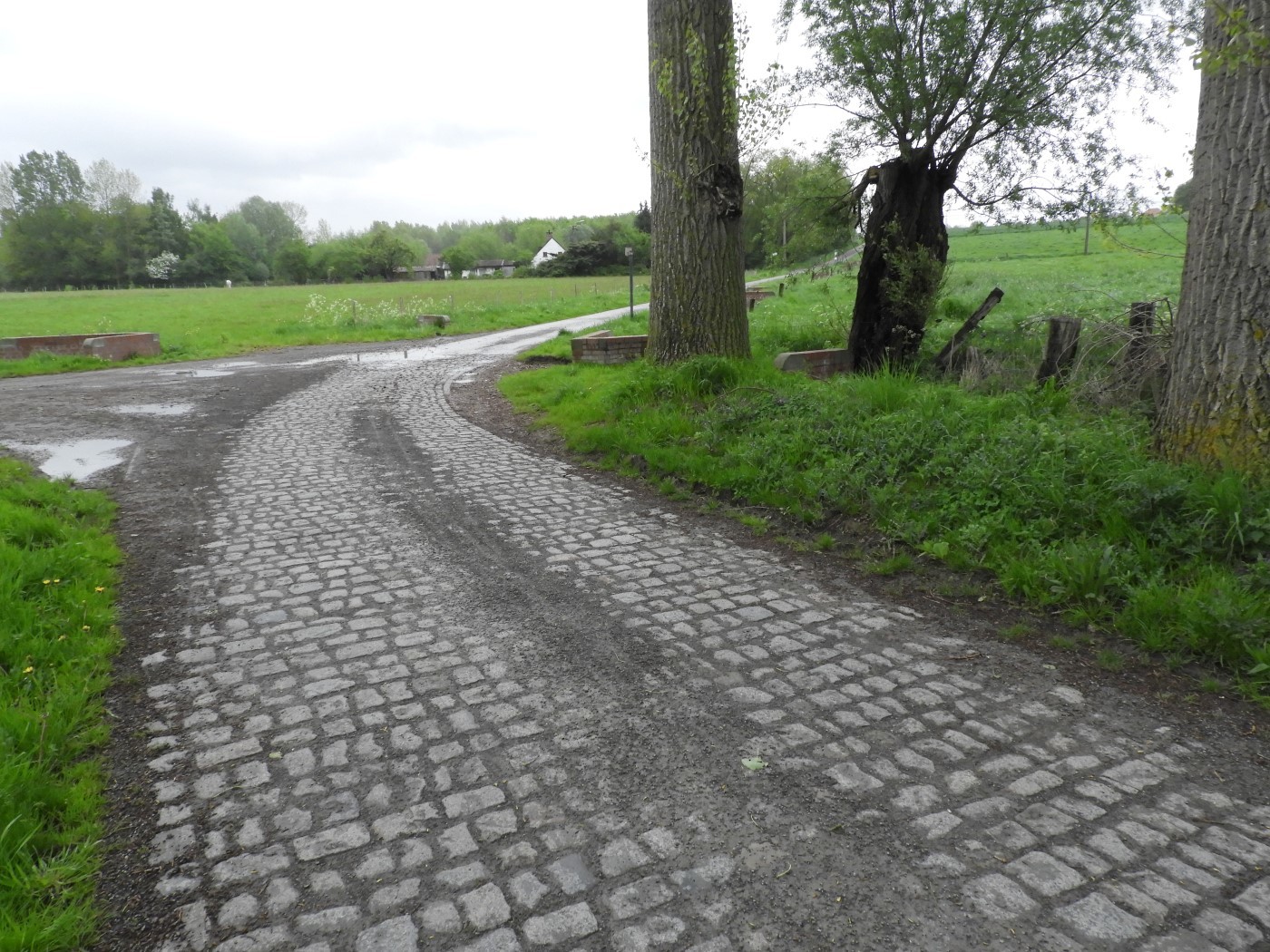 Merelbeke Meersstraat Kasseiweg en zicht op meersen