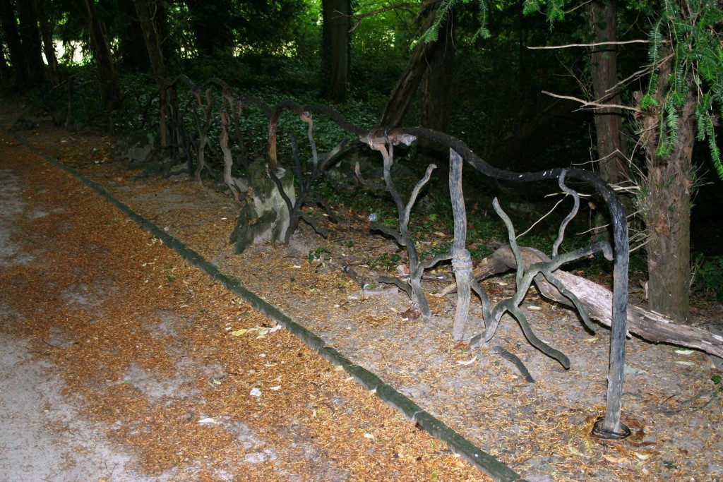 De afbeelding 'Plantentuin hekwerk in boomstamimitatie' gemaakt door Kennes, Hilde wordt ter beschikking gesteld door Agentschap Onroerend Erfgoed (AOE) onder de volgende voorwaarden: Modellicentie voor gratis hergebruik, Naamsvermelding 4.0 Internationaal.