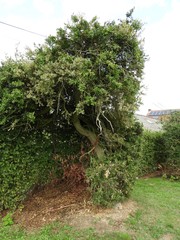 De afbeelding 'Twee op stam gezette buxussen pastorietuin Nieuwenhove' gemaakt door Verdurmen, Inge wordt ter beschikking gesteld door Agentschap Onroerend Erfgoed (AOE) onder de volgende voorwaarden: Modellicentie voor gratis hergebruik, Naamsvermelding 4.0 Internationaal.