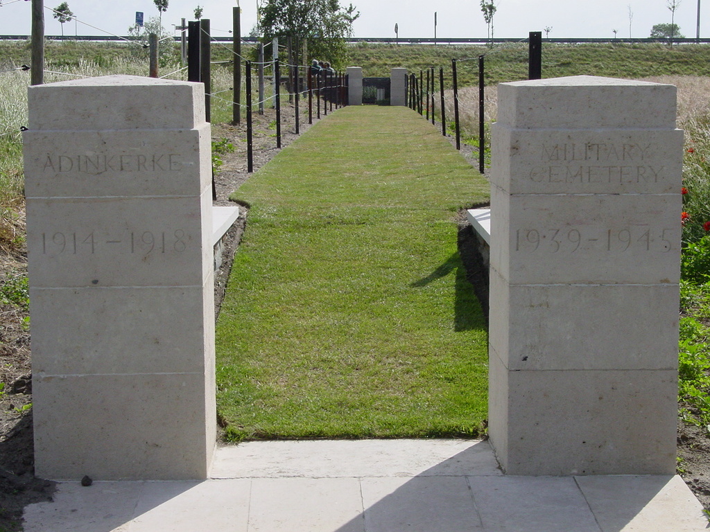 De afbeelding 'De Panne: Adinkerke Military Cemetery: Toegang' gemaakt door Decoodt, Hannelore wordt ter beschikking gesteld door Agentschap Onroerend Erfgoed (AOE) onder de volgende voorwaarden: Modellicentie voor gratis hergebruik, Naamsvermelding 4.0 Internationaal.