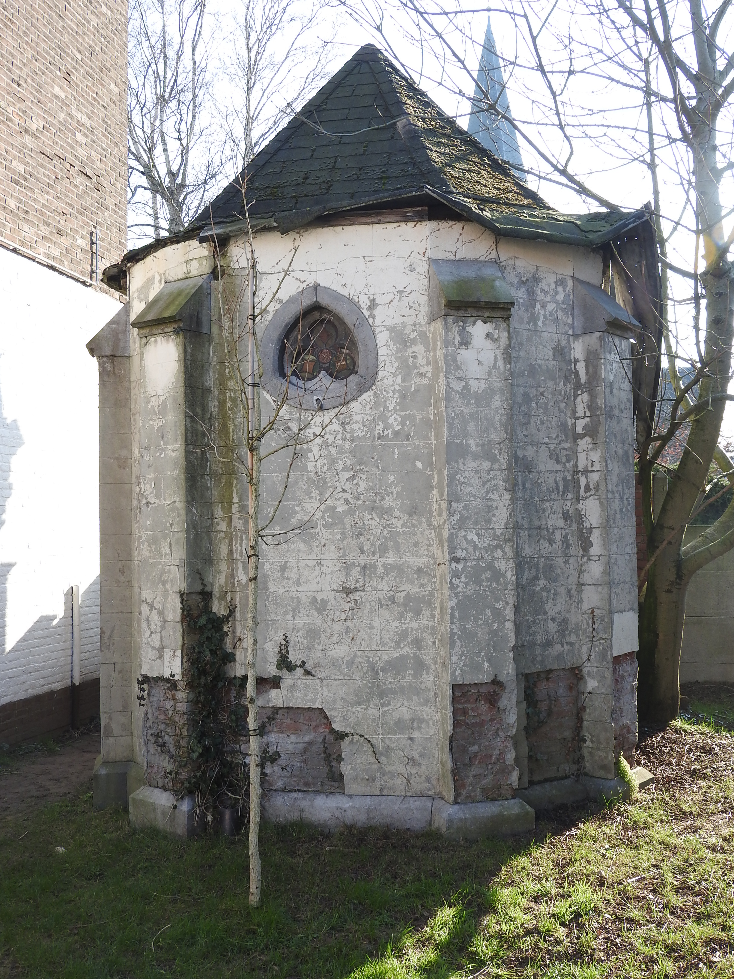 De grafkapel is toegankelijk via het kerkhof van de parochiekerk Heilig Hart, maar is gesitueerd op het perceel van het Klooster In het Hofken van Olijven en meisjesschool.