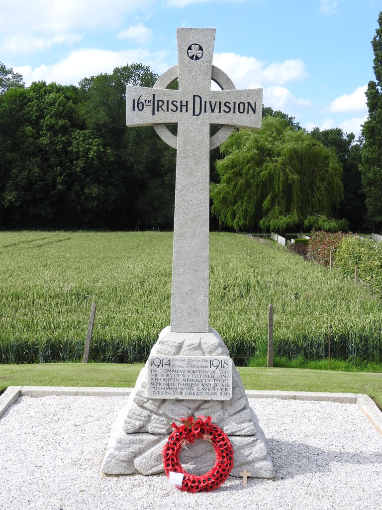 De afbeelding 'Gedenkkruis 16th Irish Division' gemaakt door Mertens, Joeri wordt ter beschikking gesteld door Agentschap Onroerend Erfgoed (AOE) onder de volgende voorwaarden: Modellicentie voor gratis hergebruik, Naamsvermelding 4.0 Internationaal.
