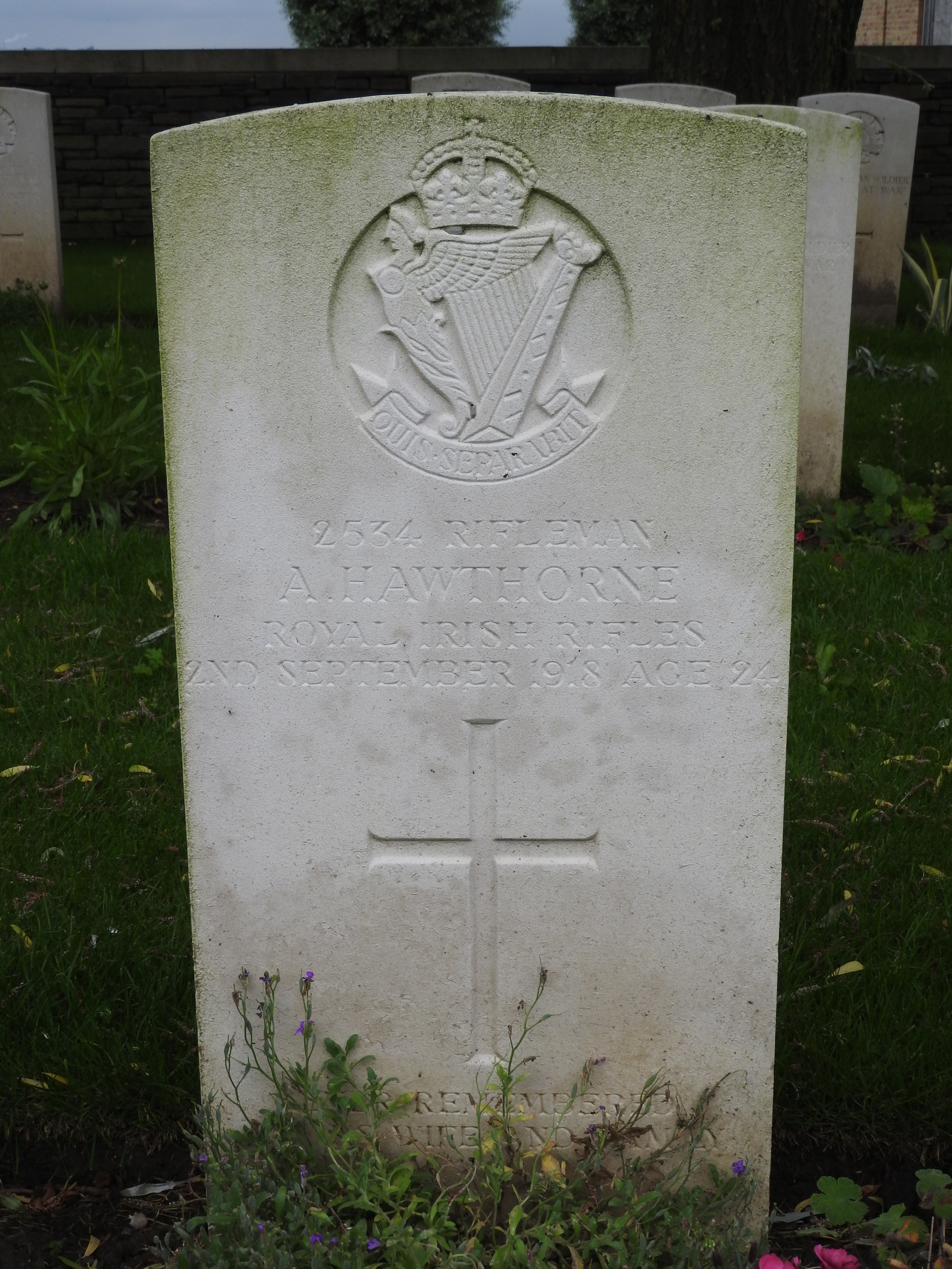 De afbeelding 'Mesen Messines Ridge Cemetery 20160622 (6)' gemaakt door Mertens, Joeri wordt ter beschikking gesteld door Agentschap Onroerend Erfgoed (AOE) onder de volgende voorwaarden: Modellicentie voor gratis hergebruik, Naamsvermelding 4.0 Internationaal.