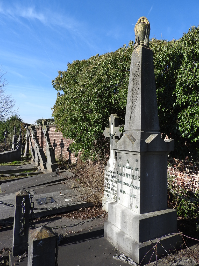 De afbeelding 'St-Pieters-Leeuw Eiklaan Begraafplaats (22)' gemaakt door Mertens, Joeri wordt ter beschikking gesteld door Agentschap Onroerend Erfgoed (AOE) onder de volgende voorwaarden: Modellicentie voor gratis hergebruik, Naamsvermelding 4.0 Internationaal.