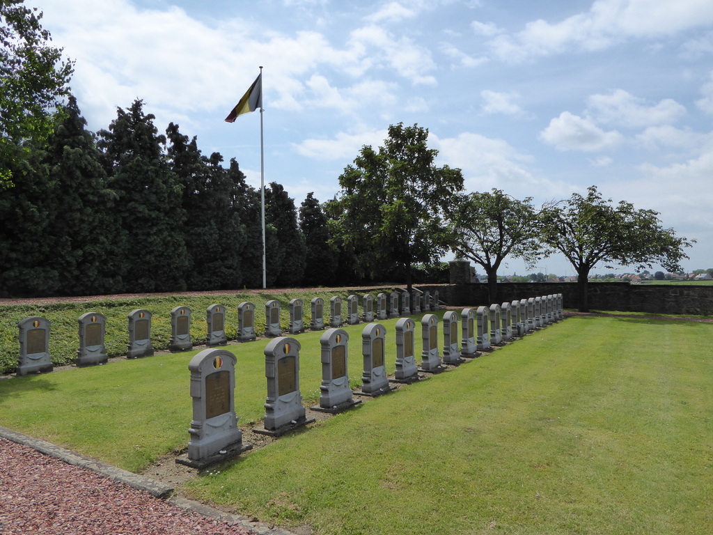 De afbeelding 'Belgische militaire begraafplaats ID 201112 19062016 (5) - kopie' gemaakt door Mertens, Joeri wordt ter beschikking gesteld door Agentschap Onroerend Erfgoed (AOE) onder de volgende voorwaarden: Modellicentie voor gratis hergebruik, Naamsvermelding 4.0 Internationaal.