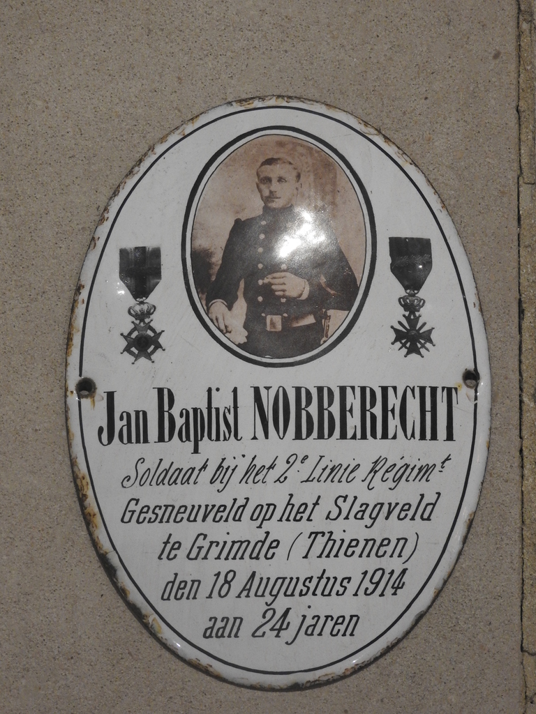 De afbeelding 'Tienen Grimde memoriaal (126)' gemaakt door Mertens, Joeri wordt ter beschikking gesteld door Agentschap Onroerend Erfgoed (AOE) onder de volgende voorwaarden: Modellicentie voor gratis hergebruik, Naamsvermelding 4.0 Internationaal.