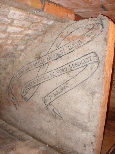 De afbeelding 'Veurne: Ooststraat 20: Kelder: Spreuk 'Veilig binnen' en datering' gemaakt door Decoodt, Hannelore wordt ter beschikking gesteld door Agentschap Onroerend Erfgoed (AOE) onder de volgende voorwaarden: Modellicentie voor gratis hergebruik, Naamsvermelding 4.0 Internationaal.