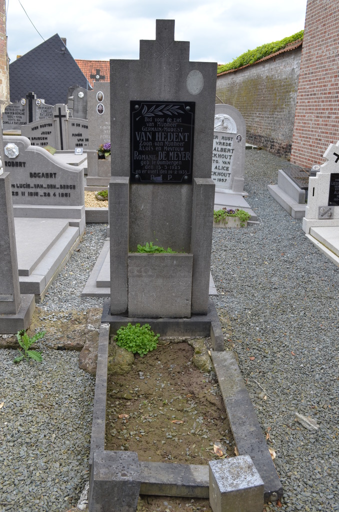 De afbeelding 'fam Van Hedent De Meyer OB 20130522 01' gemaakt door Mertens, Joeri wordt ter beschikking gesteld door Agentschap Onroerend Erfgoed (AOE) onder de volgende voorwaarden: Modellicentie voor gratis hergebruik, Naamsvermelding 4.0 Internationaal.