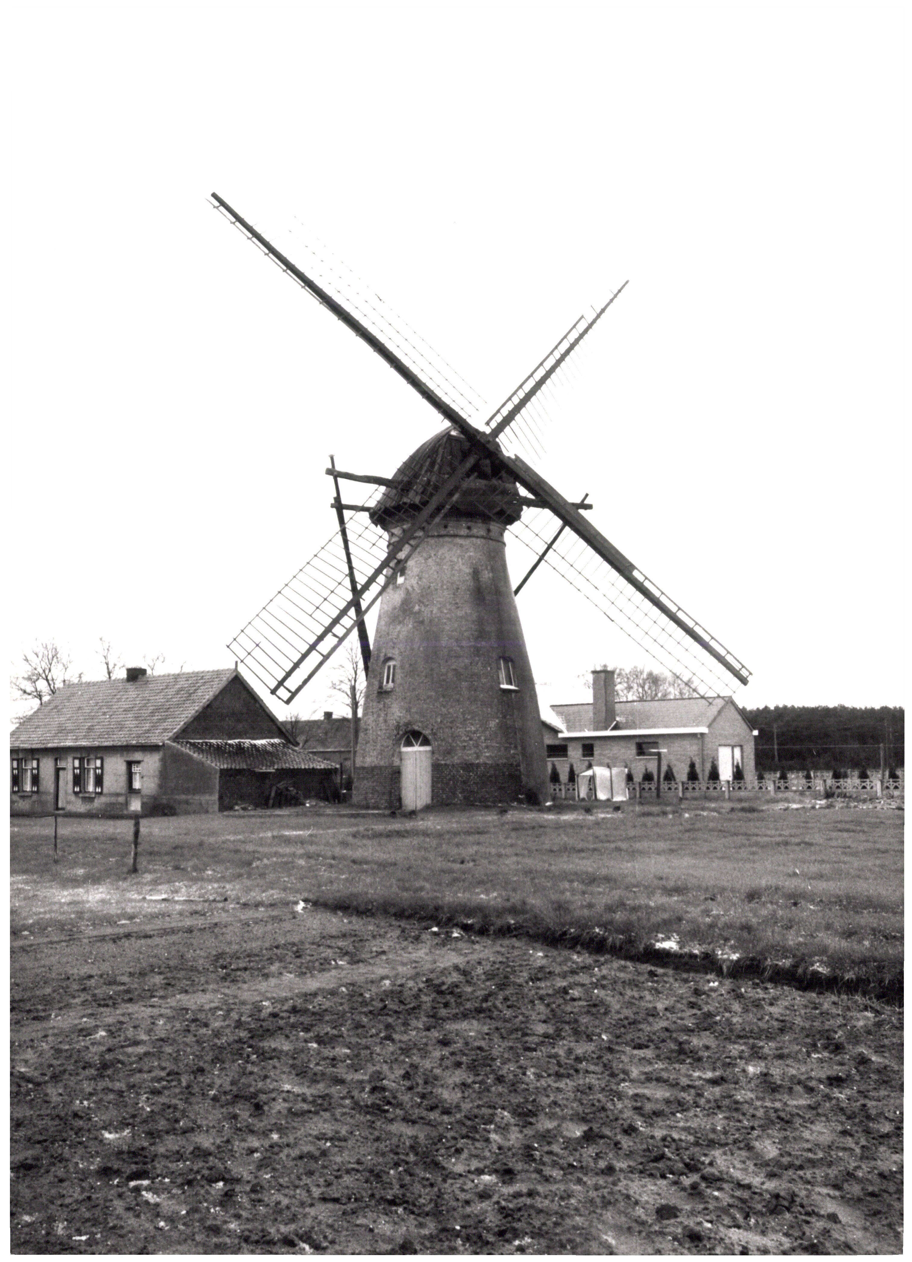 De afbeelding 'Windmolen en molenaarswoning' wordt ter beschikking gesteld door Agentschap Onroerend Erfgoed (AOE) onder de volgende voorwaarden: Modellicentie voor gratis hergebruik, Naamsvermelding 4.0 Internationaal.