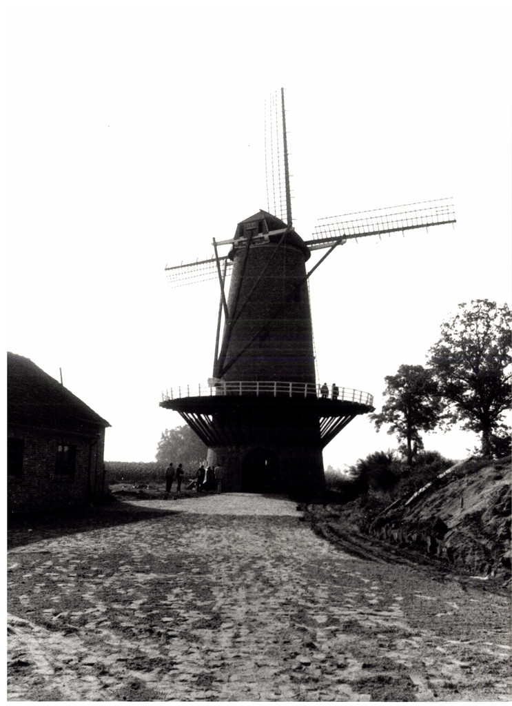 De afbeelding 'Hoeve met windmolen' wordt ter beschikking gesteld door Agentschap Onroerend Erfgoed (AOE) onder de volgende voorwaarden: Modellicentie voor gratis hergebruik, Naamsvermelding 4.0 Internationaal.