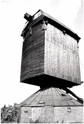 De afbeelding 'Houten windmolen' wordt ter beschikking gesteld door Agentschap Onroerend Erfgoed (AOE) onder de volgende voorwaarden: Modellicentie voor gratis hergebruik, Naamsvermelding 4.0 Internationaal.
