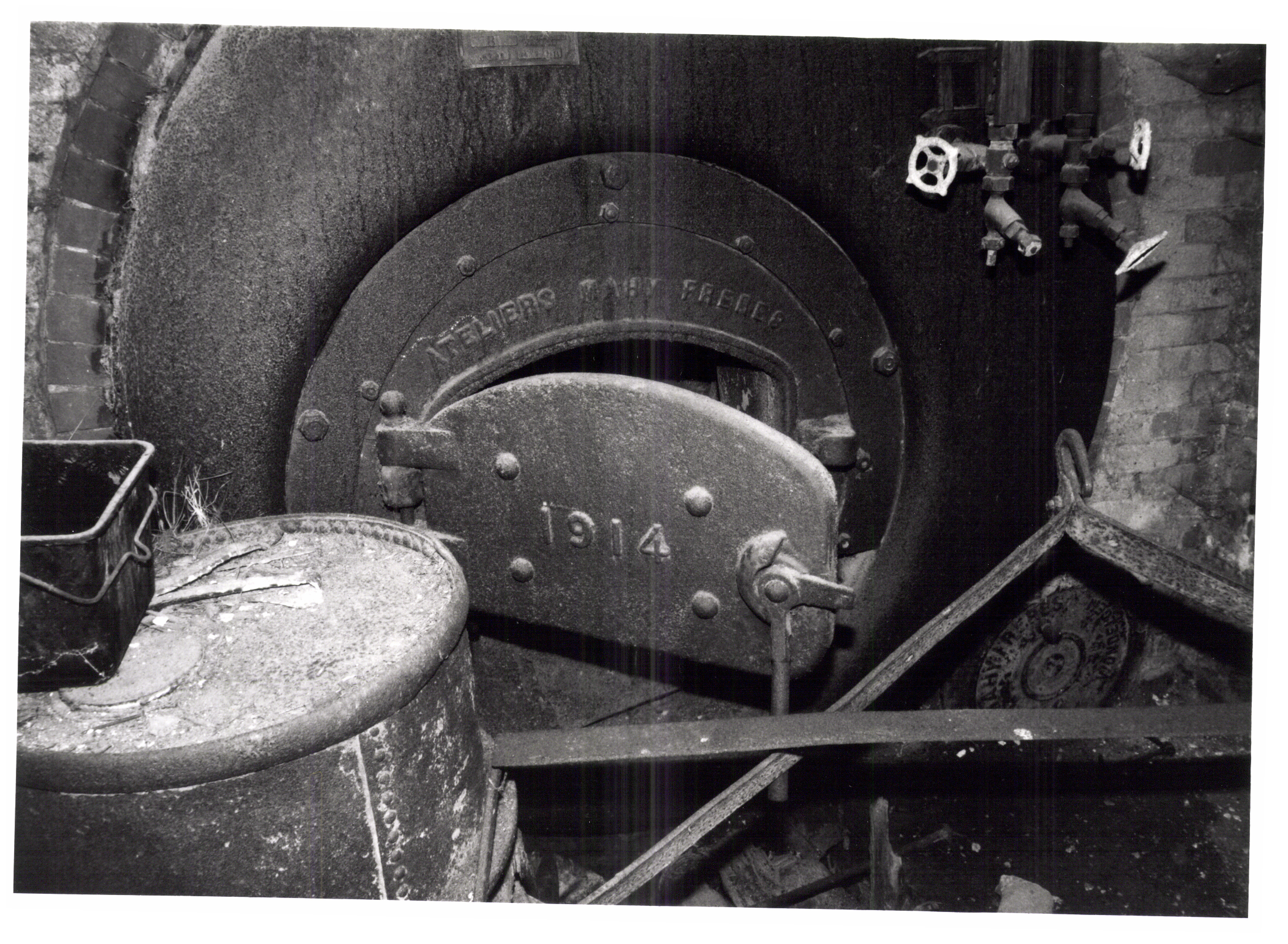 Opschrift achterzijde afbeelding: "stoommachine - stoomketel"