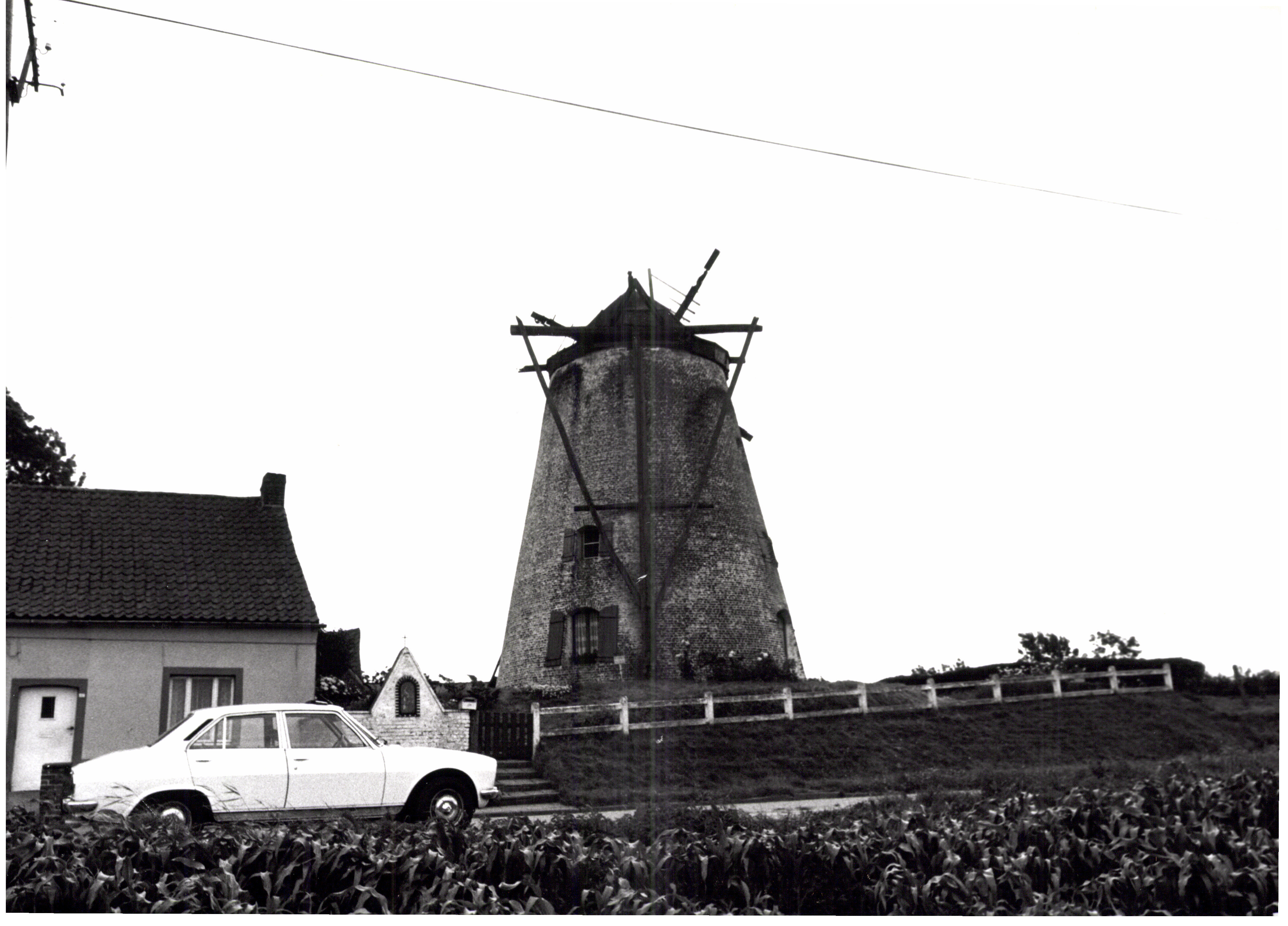 De afbeelding 'Windmolen en molenaarswoning' wordt ter beschikking gesteld door Agentschap Onroerend Erfgoed (AOE) onder de volgende voorwaarden: Modellicentie voor gratis hergebruik, Naamsvermelding 4.0 Internationaal.