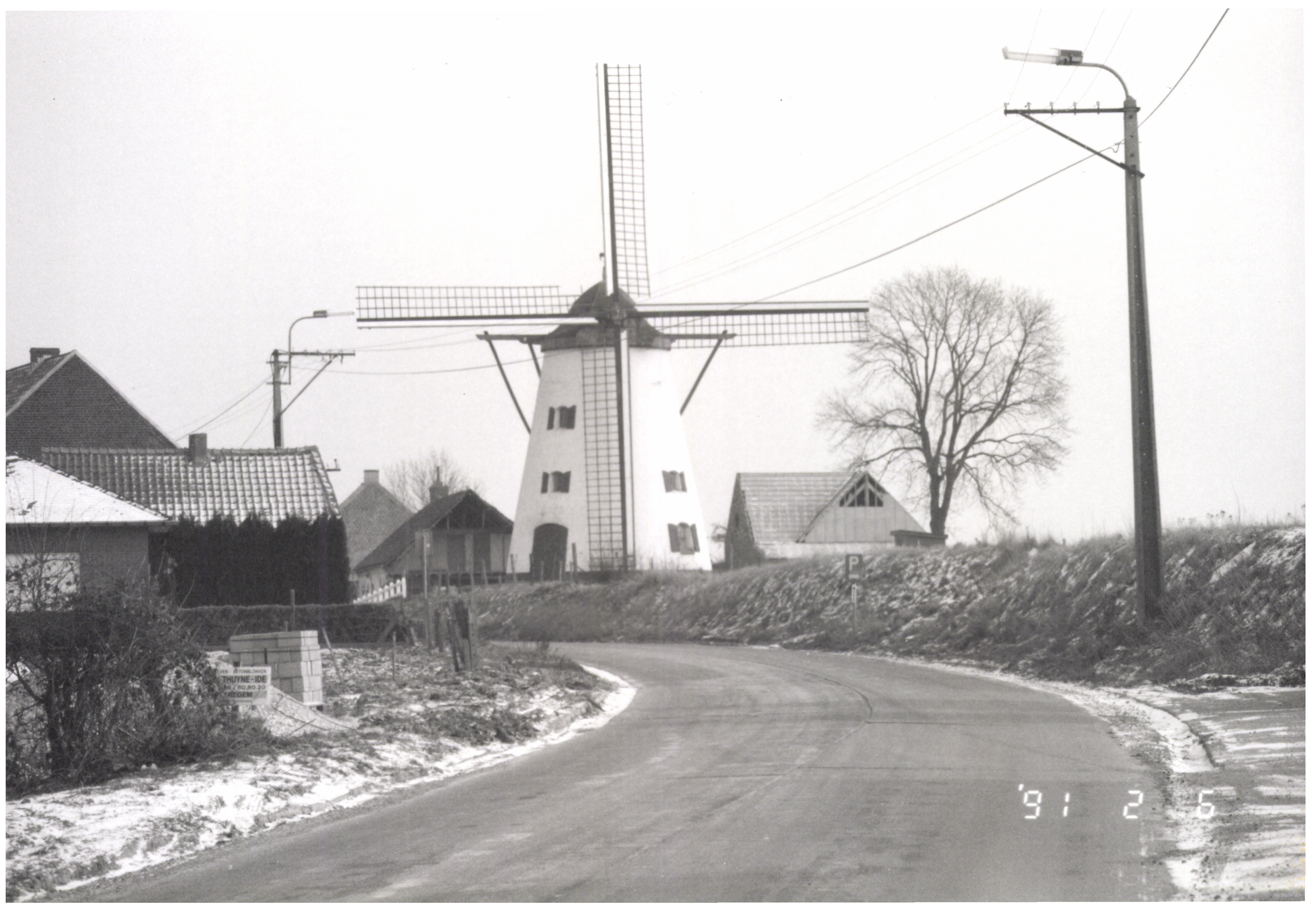 De afbeelding 'Windmolen en molenaarswoning' wordt ter beschikking gesteld door Agentschap Onroerend Erfgoed (AOE) onder de volgende voorwaarden: Modellicentie voor gratis hergebruik, Naamsvermelding 4.0 Internationaal.