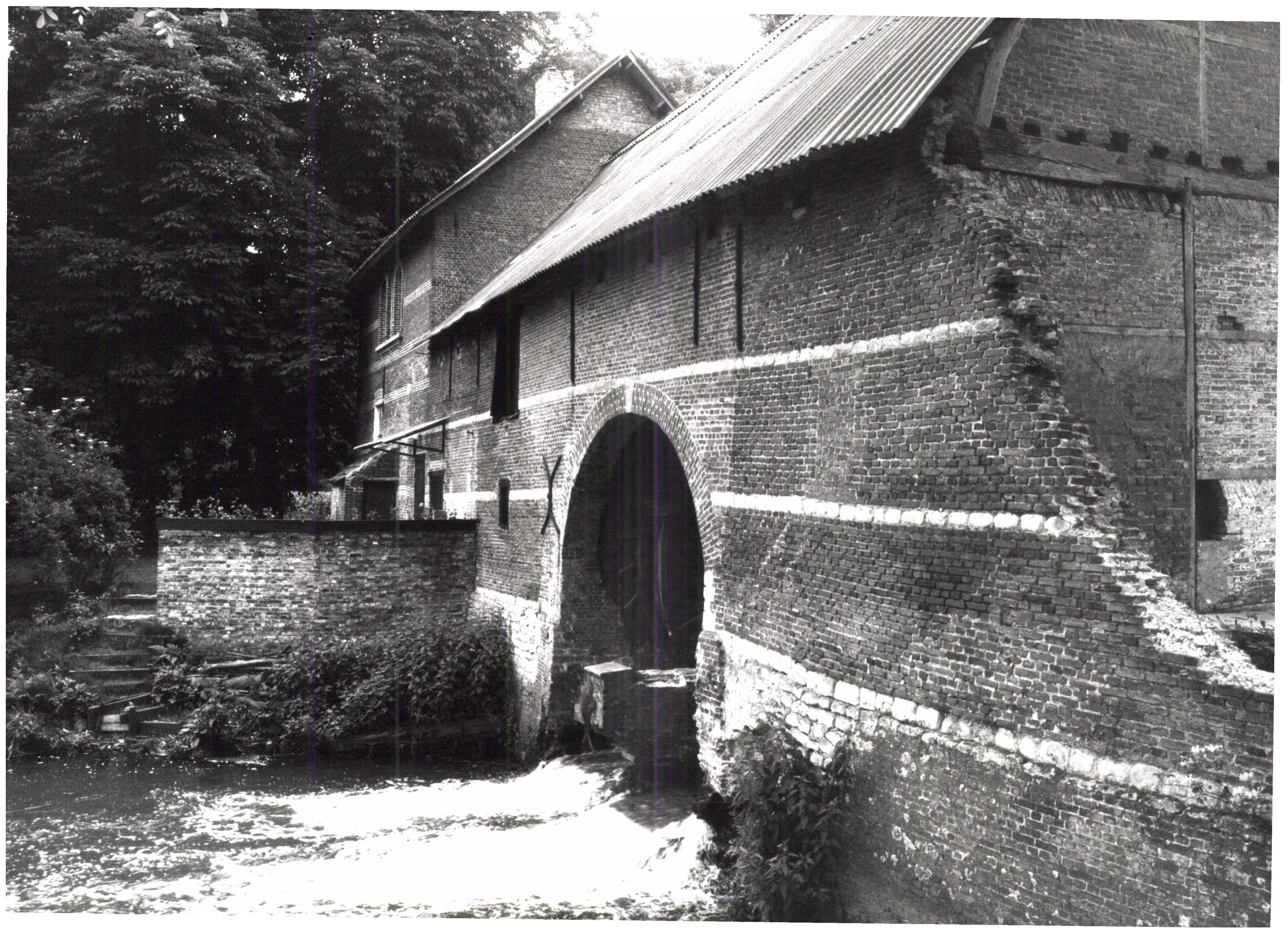 De afbeelding 'Molenhuis met watermolen en molenaarswoning' wordt ter beschikking gesteld door Agentschap Onroerend Erfgoed (AOE) onder de volgende voorwaarden: Modellicentie voor gratis hergebruik, Naamsvermelding 4.0 Internationaal.