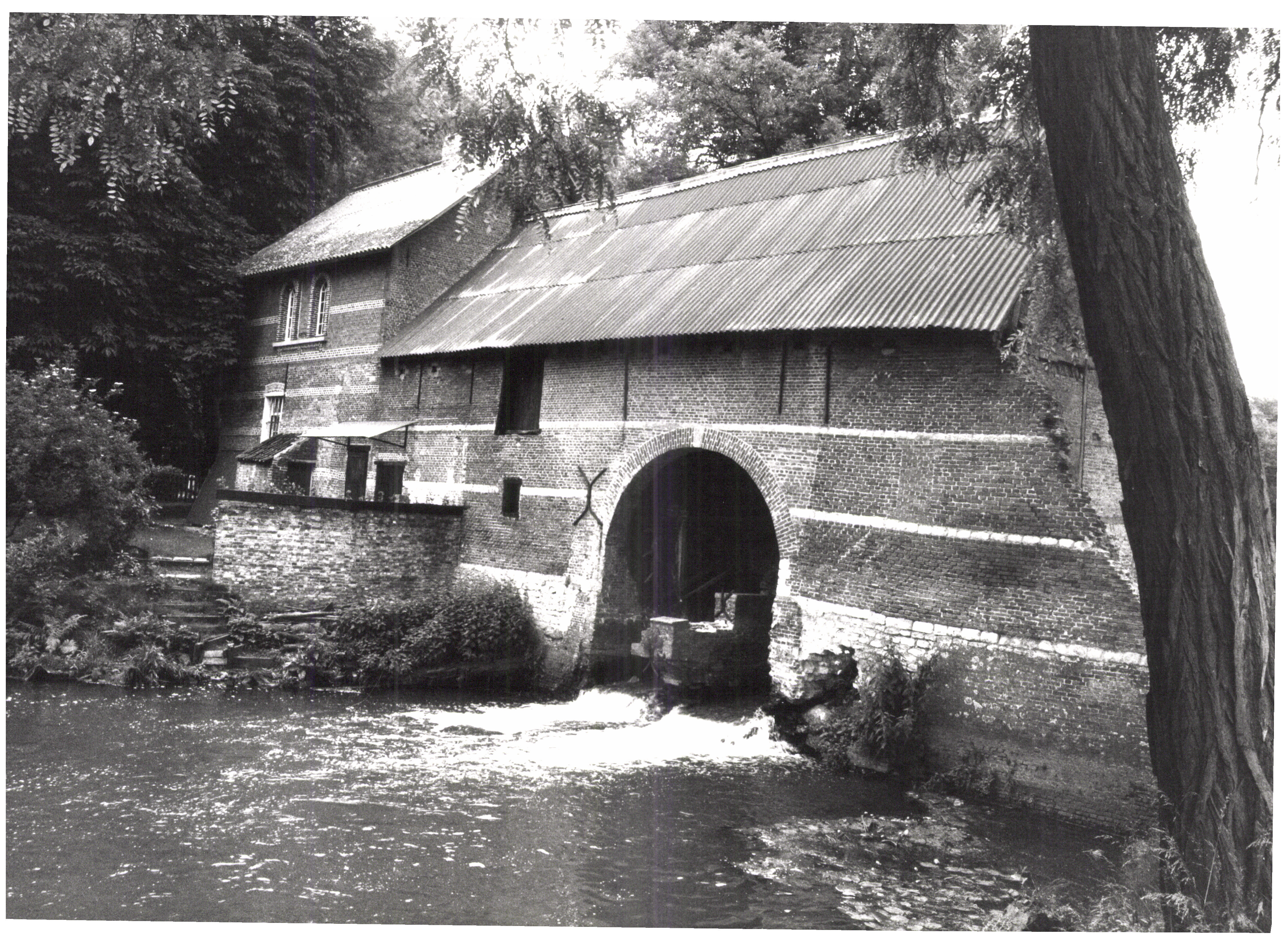 De afbeelding 'Molenhuis met watermolen en molenaarswoning' wordt ter beschikking gesteld door Agentschap Onroerend Erfgoed (AOE) onder de volgende voorwaarden: Modellicentie voor gratis hergebruik, Naamsvermelding 4.0 Internationaal.