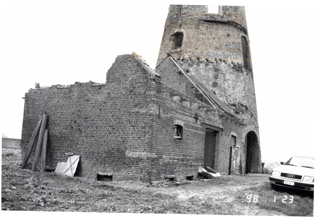 De afbeelding 'Windmolenromp en molenaarswoning' wordt ter beschikking gesteld door Agentschap Onroerend Erfgoed (AOE) onder de volgende voorwaarden: Modellicentie voor gratis hergebruik, Naamsvermelding 4.0 Internationaal.