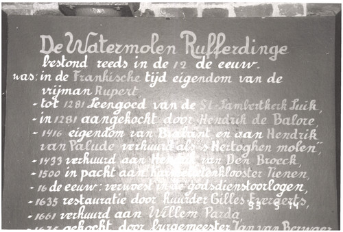 De afbeelding 'Watermolen Rufferdingemolen met molenaarswoning' wordt ter beschikking gesteld door Agentschap Onroerend Erfgoed (AOE) onder de volgende voorwaarden: Modellicentie voor gratis hergebruik, Naamsvermelding 4.0 Internationaal.