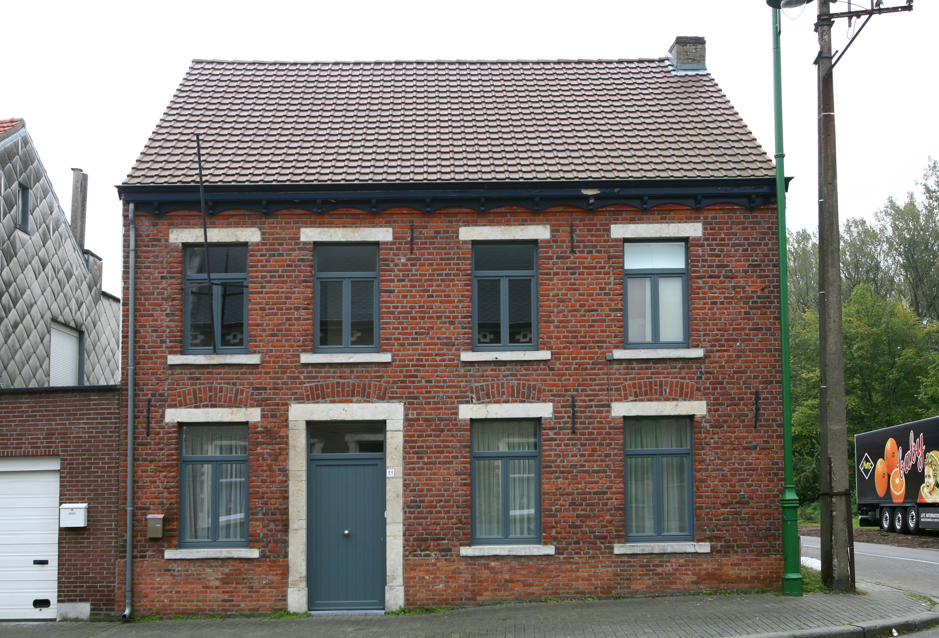 De afbeelding 'Hoegaarden St.-Ermelindisstraat 33' gemaakt door Vandevorst, Kris wordt ter beschikking gesteld door Agentschap Onroerend Erfgoed (AOE) onder de volgende voorwaarden: Modellicentie voor gratis hergebruik, Naamsvermelding 4.0 Internationaal.