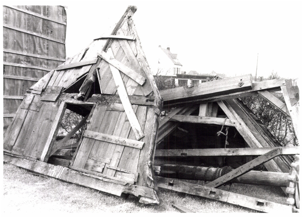 De afbeelding 'Houten windmolen ' wordt ter beschikking gesteld door Agentschap Onroerend Erfgoed (AOE) onder de volgende voorwaarden: Modellicentie voor gratis hergebruik, Naamsvermelding 4.0 Internationaal.