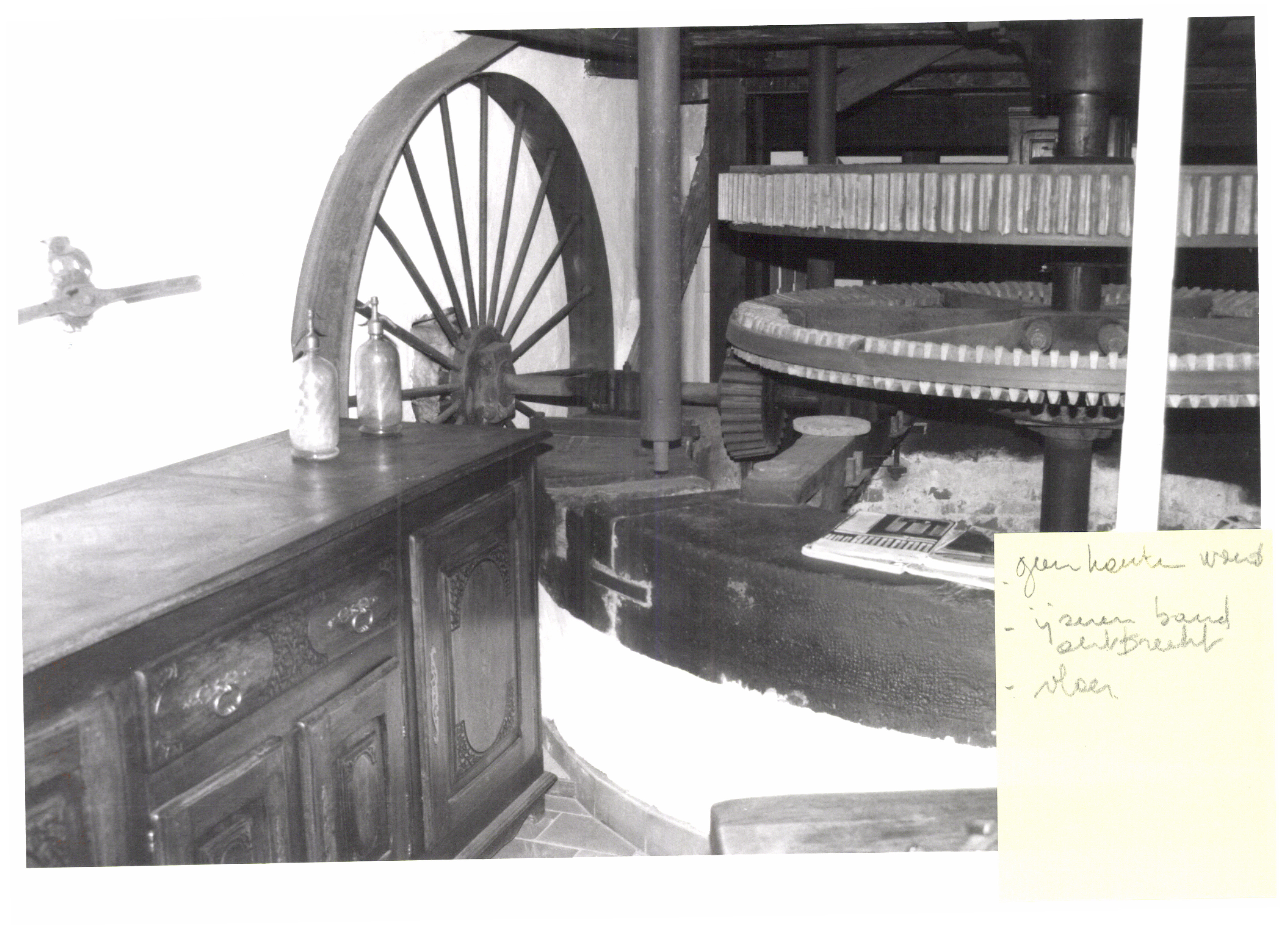 Opschrift Post-it: "- geen houten wand/- ijzeren band/ontbreekt/- vloer"