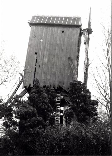 De afbeelding 'Houten windmolen' wordt ter beschikking gesteld door Agentschap Onroerend Erfgoed (AOE) onder de volgende voorwaarden: Modellicentie voor gratis hergebruik, Naamsvermelding 4.0 Internationaal.