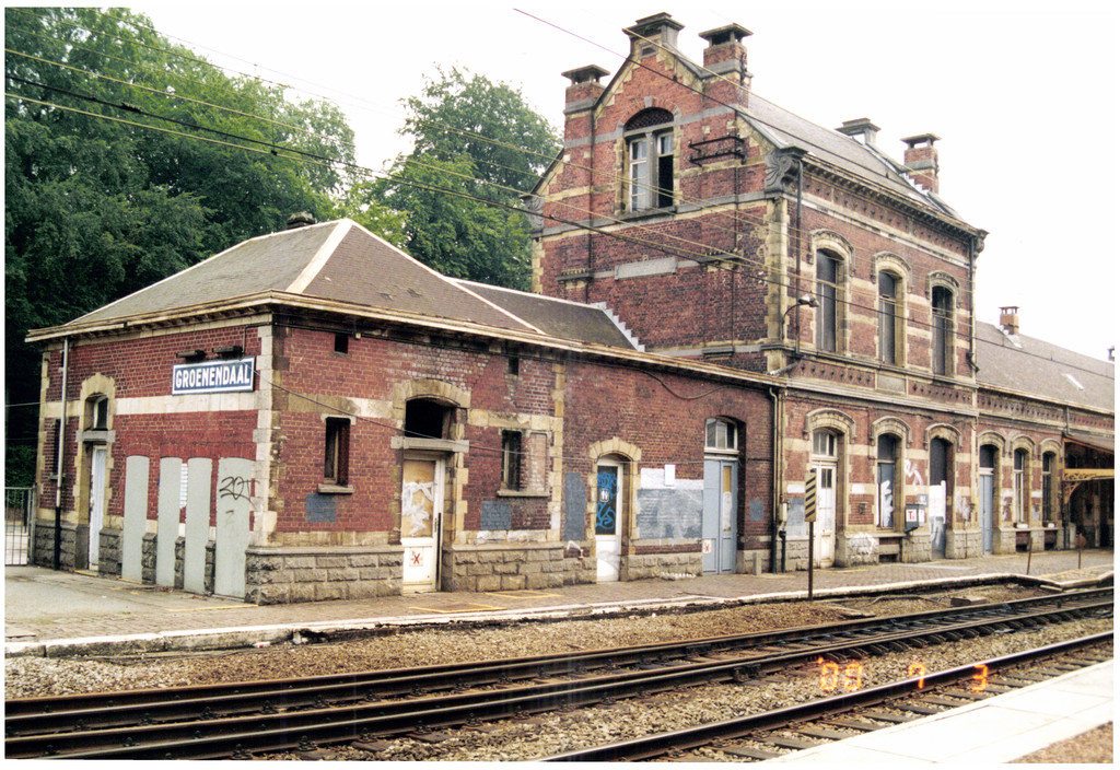 De afbeelding 'Station Groenendaal met schuilplaats' gemaakt door De Schepper, Jo wordt ter beschikking gesteld door Agentschap Onroerend Erfgoed (AOE) onder de volgende voorwaarden: Modellicentie voor gratis hergebruik, Naamsvermelding 4.0 Internationaal.