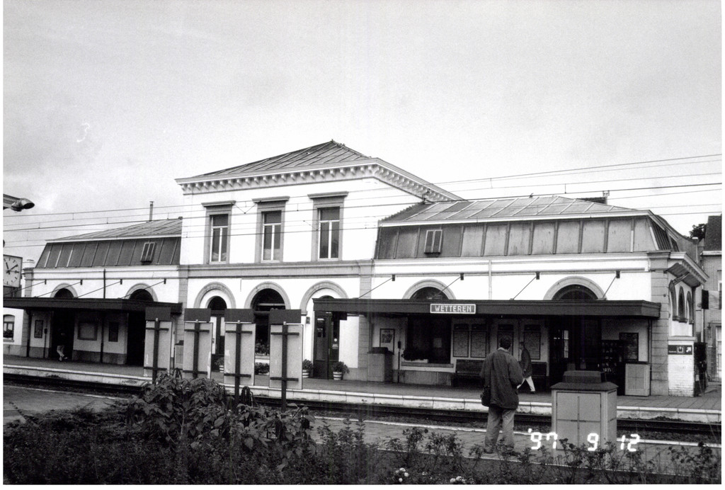 De afbeelding 'Station Wetteren met wachthuis' gemaakt door De Schepper, Jo wordt ter beschikking gesteld door Agentschap Onroerend Erfgoed (AOE) onder de volgende voorwaarden: Modellicentie voor gratis hergebruik, Naamsvermelding 4.0 Internationaal.