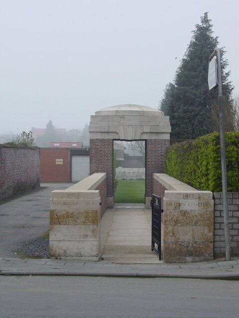 De afbeelding 'Poperinge: Poperinghe Old Military Cemetery: Toegang' gemaakt door Decoodt, Hannelore wordt ter beschikking gesteld door Agentschap Onroerend Erfgoed (AOE) onder de volgende voorwaarden: Modellicentie voor gratis hergebruik, Naamsvermelding 4.0 Internationaal.