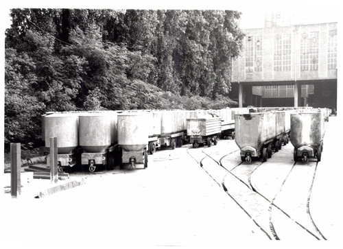 Speciaal type mijnwagentjes voor vervoer gips (tonnetjes onder druk)