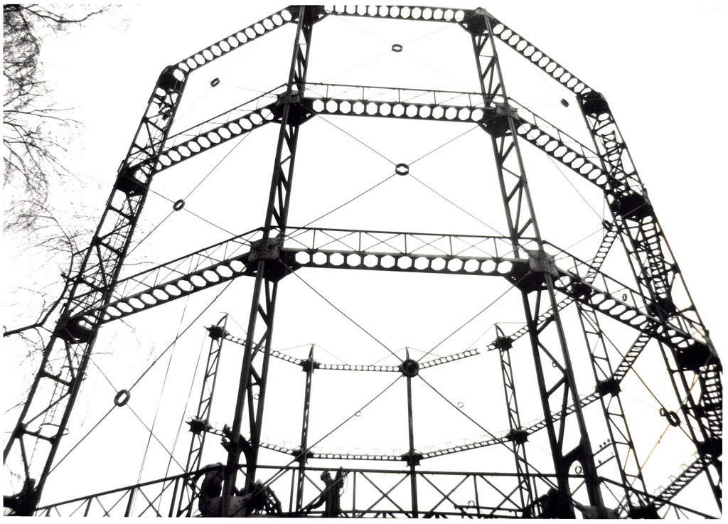 De afbeelding 'Metalen gashouder' wordt ter beschikking gesteld door Agentschap Onroerend Erfgoed (AOE) onder de volgende voorwaarden: Modellicentie voor gratis hergebruik, Naamsvermelding 4.0 Internationaal.