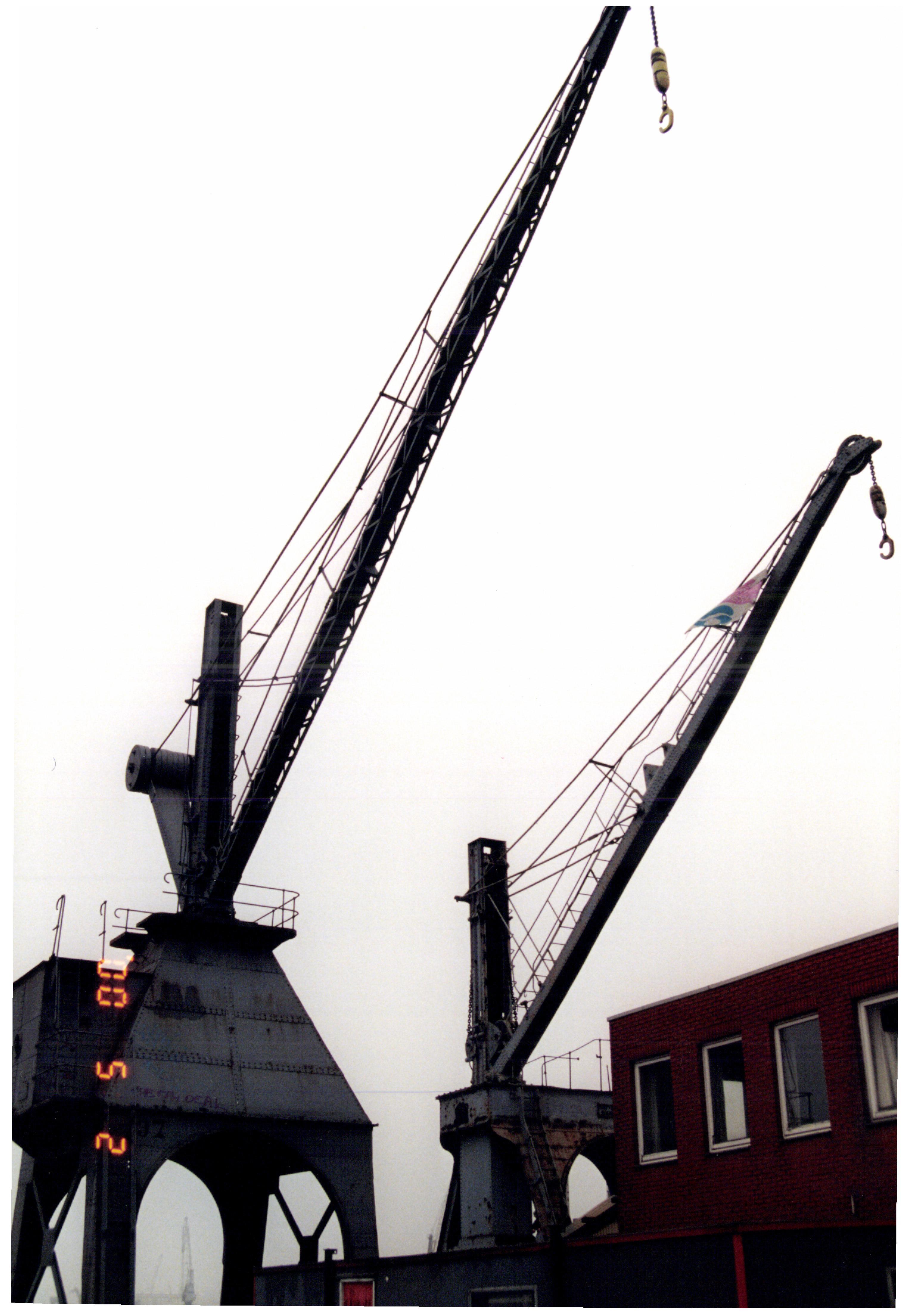 De afbeelding 'Hydraulische walkraan 97 en 111' gemaakt door De Schepper, Jo wordt ter beschikking gesteld door Agentschap Onroerend Erfgoed (AOE) onder de volgende voorwaarden: Modellicentie voor gratis hergebruik, Naamsvermelding 4.0 Internationaal.