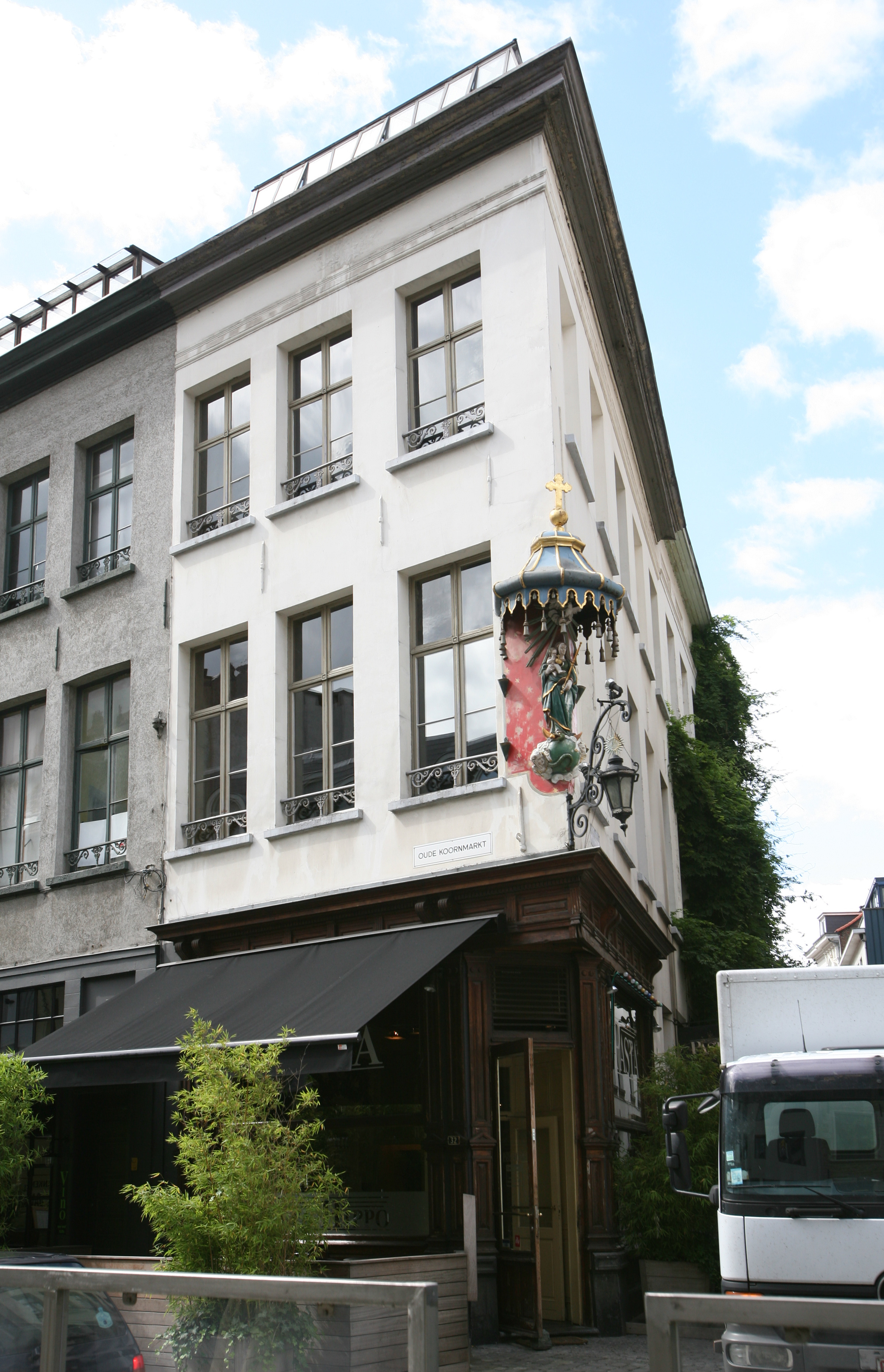 De afbeelding 'Antwerpen Oude Koornmarkt 32' gemaakt door Vandevorst, Kris wordt ter beschikking gesteld door Agentschap Onroerend Erfgoed (AOE) onder de volgende voorwaarden: Modellicentie voor gratis hergebruik, Naamsvermelding 4.0 Internationaal.