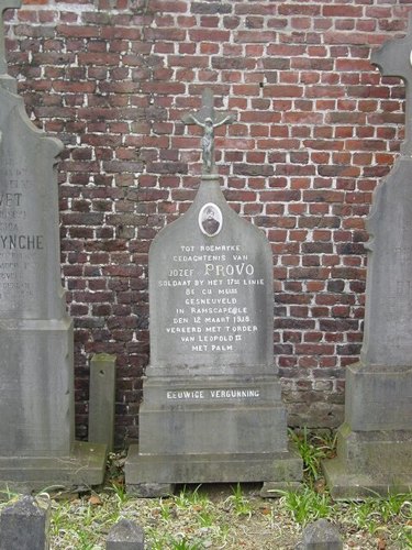 Poperinge: Stedelijke begraafplaats: Grafsteen Belgische militair Eerste Wereldoorlog Provo