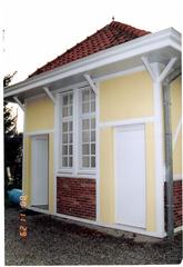 De afbeelding 'Melkhuisje en elektriciteitspyloon' gemaakt door De Schepper, Jo wordt ter beschikking gesteld door Agentschap Onroerend Erfgoed (AOE) onder de volgende voorwaarden: Modellicentie voor gratis hergebruik, Naamsvermelding 4.0 Internationaal.
