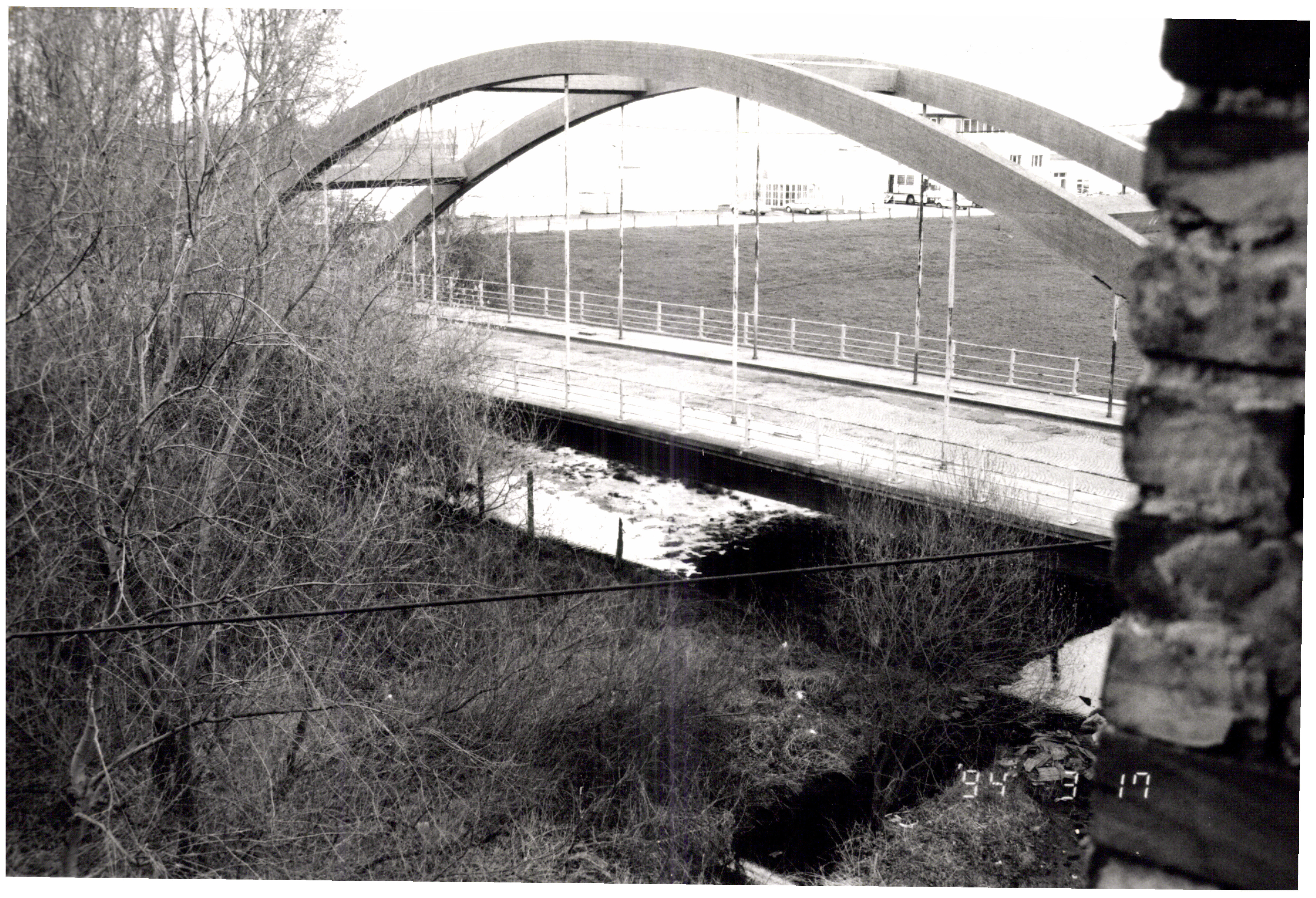 De afbeelding 'Betonnen hangbrug 4-frontenbrug' wordt ter beschikking gesteld door Agentschap Onroerend Erfgoed (AOE) onder de volgende voorwaarden: Modellicentie voor gratis hergebruik, Naamsvermelding 4.0 Internationaal.
