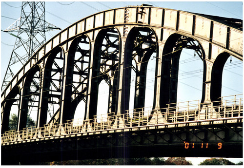 De afbeelding 'Spoorwegbrug (vierendeel) over Albertkanaal' gemaakt door De Schepper, Jo wordt ter beschikking gesteld door Agentschap Onroerend Erfgoed (AOE) onder de volgende voorwaarden: Modellicentie voor gratis hergebruik, Naamsvermelding 4.0 Internationaal.