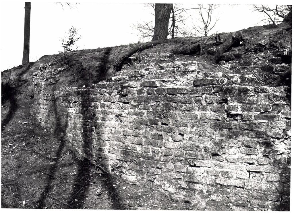 Opschrift achterzijde afbeelding: "versterking - overblijfsel muur ten ZW/t.h.v. eiland 632 f"