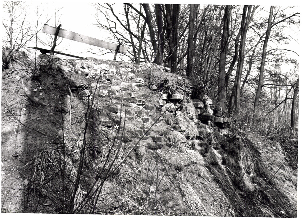 Opschrift achterzijde afbeelding: "overblijfsel hoektoren ten ZW/t.h.v. eiland 632 f"